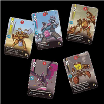 There is no trace of humans anymore. Only plants, animals, and sentient machines continue to roam the Earth. They constantly seek energy and technological advances. The Bots were created for one unique purpose: FIGHTING!Rumblebots is a deck management card game inspired by Auto Battler video games. Assemble your group of fighting robots (Bots) and launch them into the arena. The last one left standing will be the winner!Rumblebots is divided into six rounds, each consisting of two phases: Build and Battle. In the Build Phase, you assemble new Bots, adding them to your deck. Choose synergistic Bots, recycle obsolete units, level up to build ever more powerful machines, or push your luck with an aggressive, yet risky plan made by an army of simple automatons. In the Battle Phase, one team attacks and one team defends in a series of clashes. Bot decks fight each other in an almost “automatic” way. Whoever becomes Champion is challenged by the following team. The last Champion in the game wins the battle and gets powerful crystals to improve their Workshop and level up their Bots.The last team of Bots standing during the Showdown wins!-description from publisher